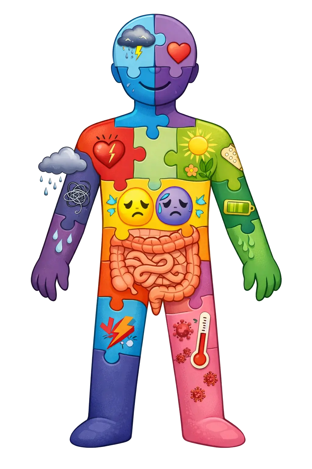 Haz clic en las piezas de tu rompecabezas para descubrir cómo cada síntoma cuenta una historia que aprenderemos a leer juntos.